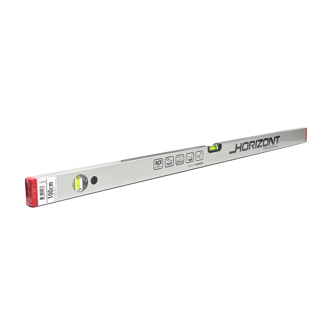 Vodováha HORIZONT, bez magnetu, v dĺžke 1000 mm je ručné meracie náradie určené na kontrolu vodorovnej a zvislej polohy pri montážnych a stavebných prácach. Slúži na presné vyrovnávanie stavebných prvkov, konštrukcií a montovaných dielov. Vyhotovenie bez magnetu je vhodné na univerzálne použitie.