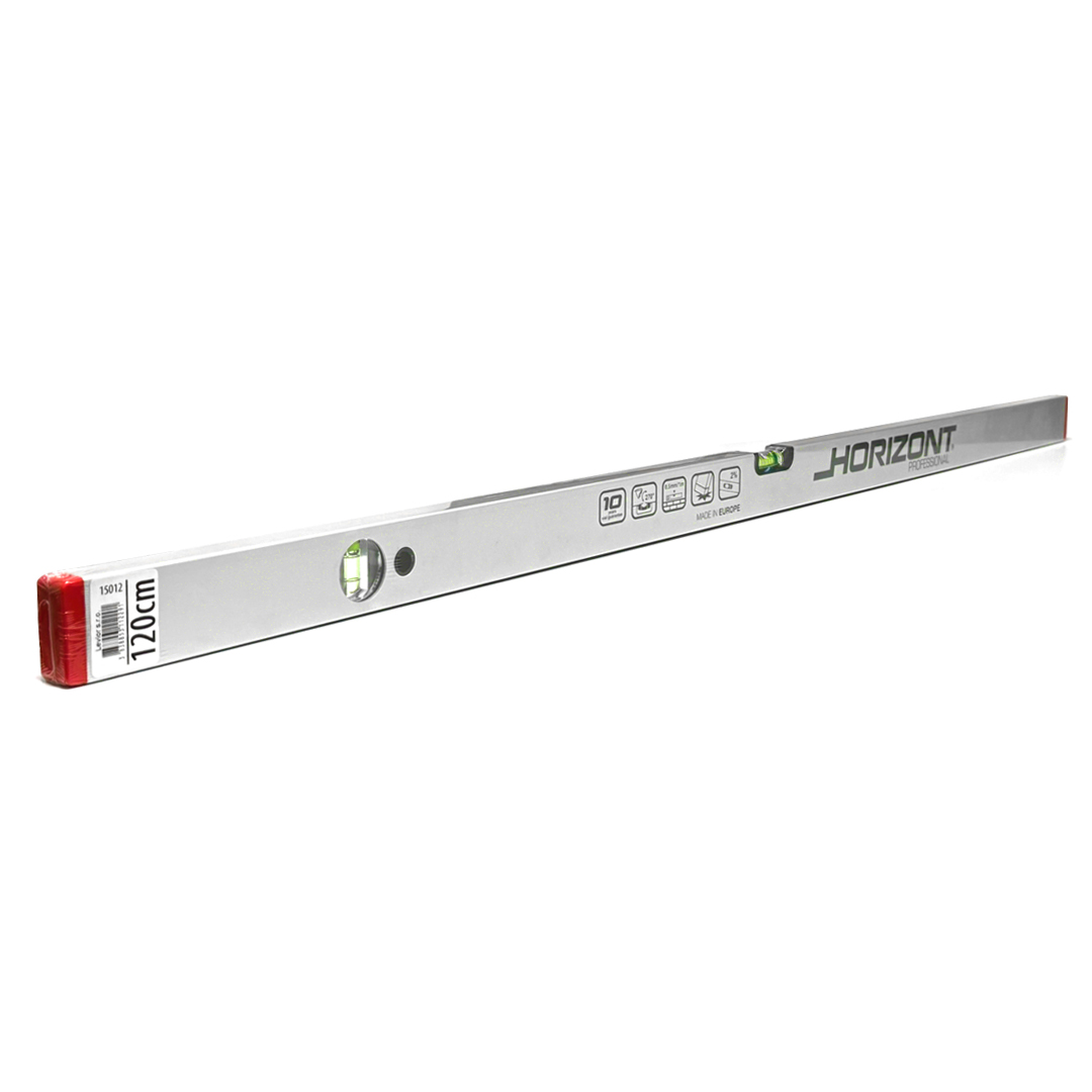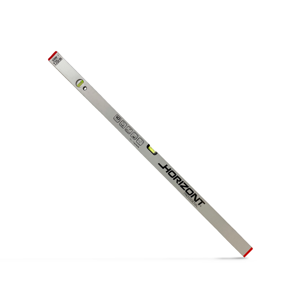 Vodováha HORIZONT, bez magnetu, v dĺžke 1200 mm je ručné meracie náradie určené na kontrolu vodorovnej a zvislej polohy pri montážnych a stavebných prácach. Slúži na presné vyrovnávanie stavebných prvkov, konštrukcií a montovaných dielov. Vyhotovenie bez magnetu je vhodné na univerzálne použitie.