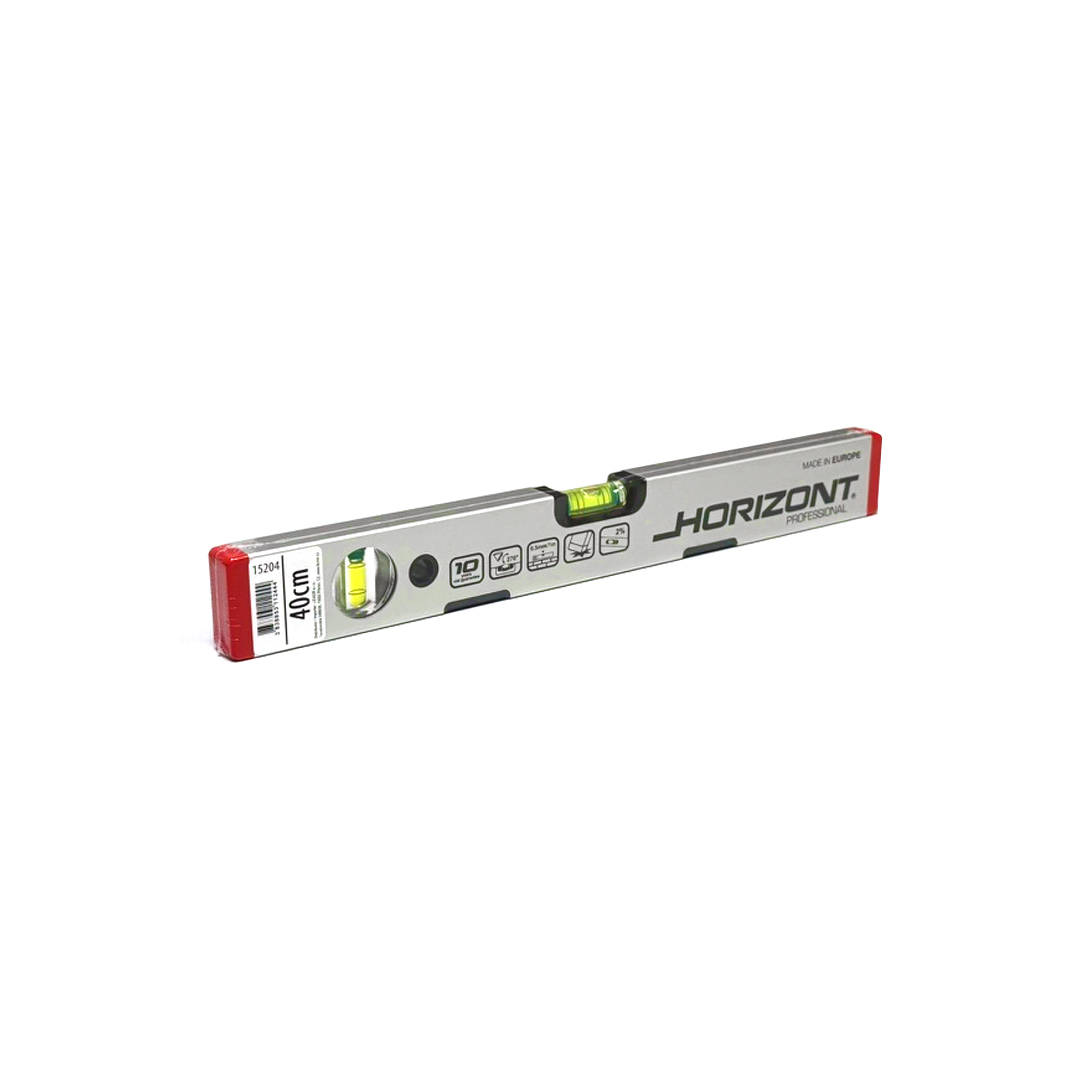 Magnetická vodováha HORIZONT s dĺžkou 400 mm je ručné meracie náradie určené na kontrolu vodorovnej a zvislej polohy pri stavebných a montážnych prácach. Je vybavená magnetmi na spodnej strane profilu pre stabilné prichytenie na kovové povrchy. Umožňuje presné vyrovnávanie konštrukcií, profilov a montovaných prvkov bez nutnosti držania náradia v rukách.